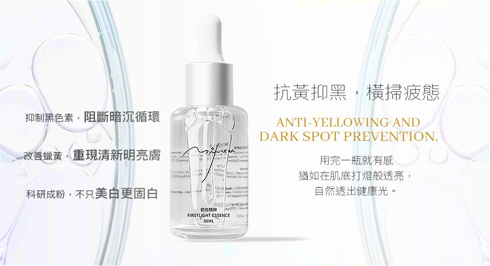 用途:維持肌膚健康白皙,滿足蠟黃暗沉、膚色不均的美白需求,讓膚色逐漸透亮,呈現自然光感。